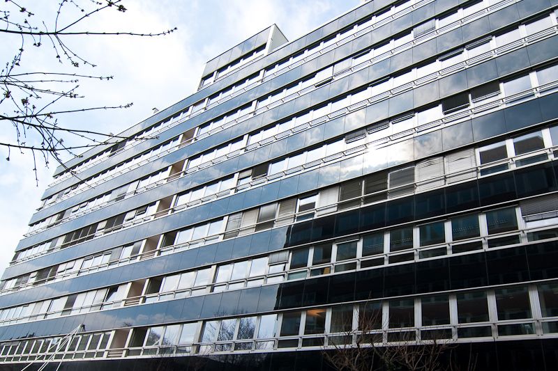 Schöne, helle Büroräume mit Blick auf die Frankfurter Skyline. Ausgestattet mit Parkdeck und Tiefgarage. Sehr günstige Verkehranbindung.