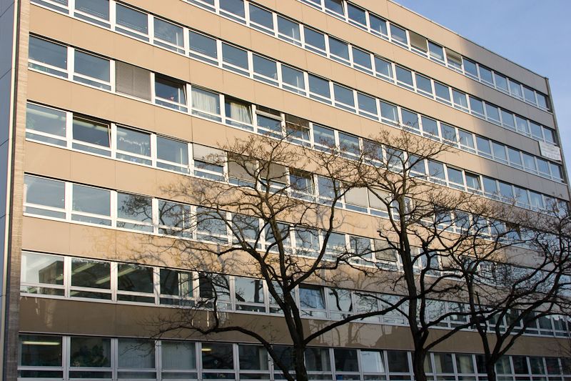 Modernes Büro- und Geschäftshaus mit mit tollem Blick auf die Frankfurter Skyline. Durch ihre besondere Raumtiefe eignen sich diese Büroräume hervorragend zu Schulungszwecken sowie als praktische Großraumbüros.